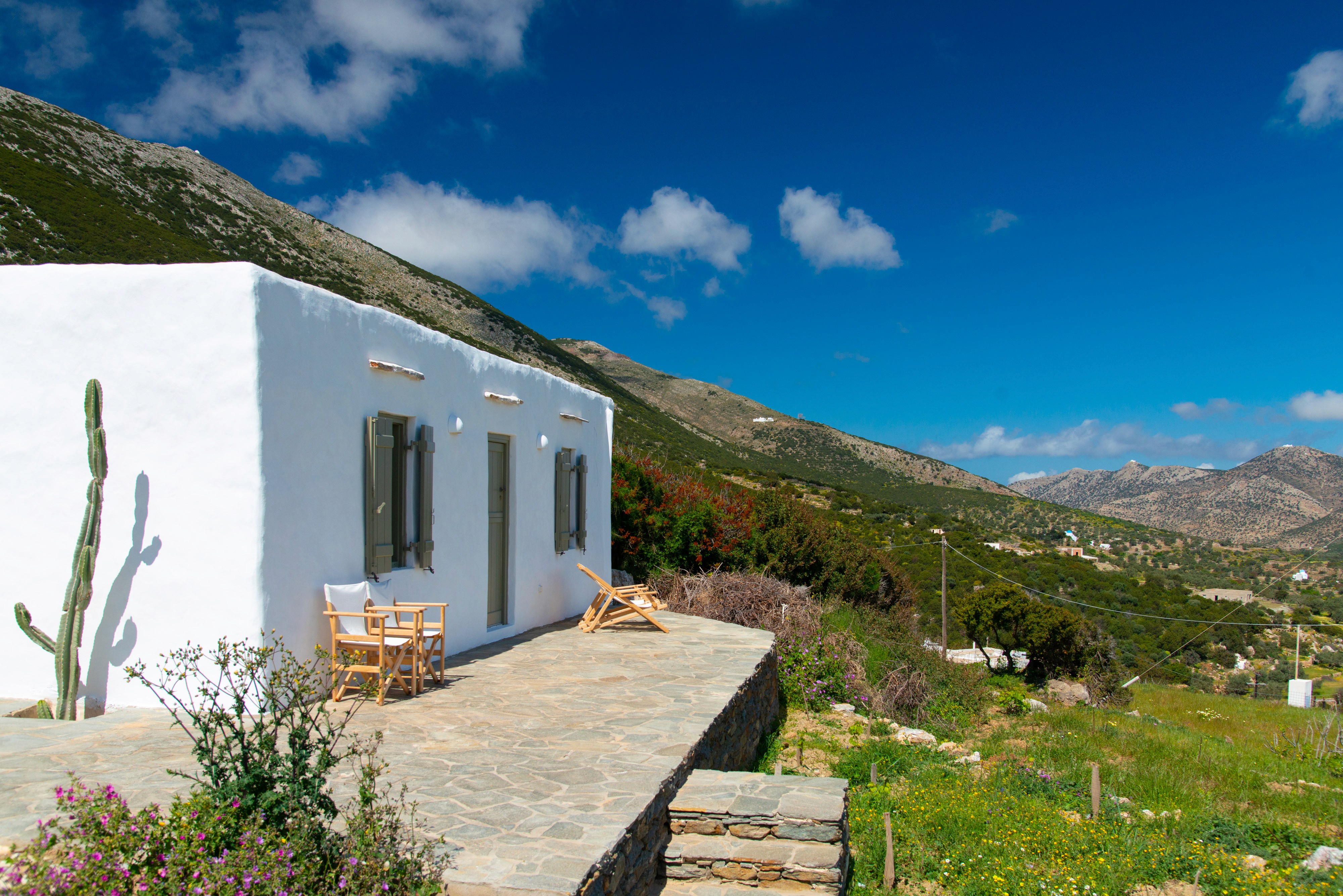 Set away in the peaceful village of Katavati, the property is just an easy 10-15 minute walk away from the lively centre of Apollonia, perfect for breakfast or dinners. The walk is pleasant for all ages, even with children.